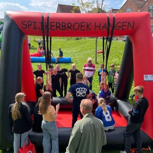 Spijkerbroek Hangen is goed te combineren met andere sportieve attracties. Denk bijvoorbeeld aan een stormbaan voor nog meer uitdaging of een springkussen voor de jongere gasten. Ook leuk in combinatie met spellen zoals de Slingerbal of Bubbel Voetbal om er een actief en afwisselend programma van te maken.